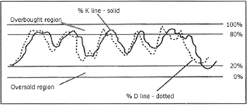 隨機計算涉及兩條線: %K 線和 %D 線,它們被用於顯示圖表中的超買 / 超賣區。 下圖中隨機指標線和價格走勢存在的背離信號是一個重要的交易警告。